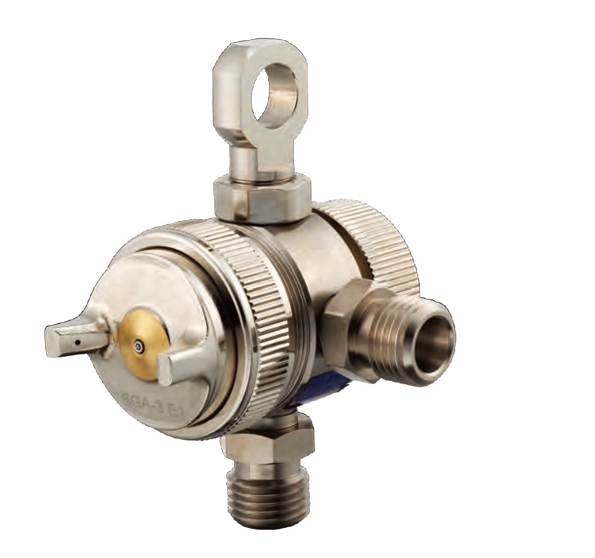 - Utiliza apenas um comando pneumático para acionamento e atomização.